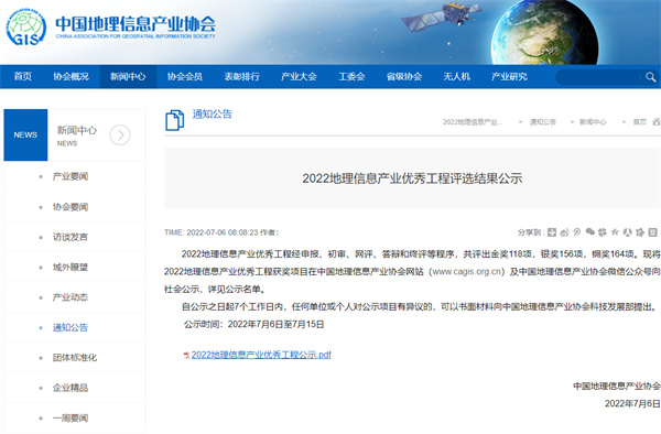?中水三立參建數(shù)字巢湖項目榮獲2022地理信息產(chǎn)業(yè)優(yōu)秀工程金獎