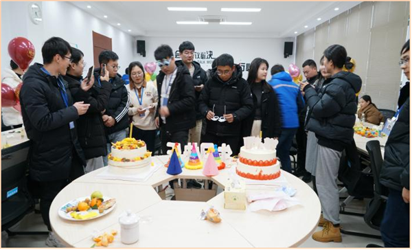 在元旦假期前一天,我們迎來了公司2023年度第三場生日會(huì)暨入職周年紀(jì)念,目之所及是一張張可愛的笑臉以及在人力資源部小伙伴們精心布置琳瑯滿目的生日裝飾和各式各樣的零食水果。