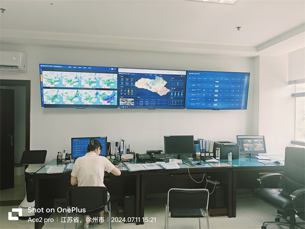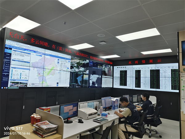 在沂沭泗水利管理局防汛值班室,值班人員通過大屏可實時查看歷史/實時水文數(shù)據(jù),系統(tǒng)仿真模擬展現(xiàn)流域洪水演進、洪水淹沒等洪水過程,獲取洪峰流量、洪峰達到時間及洪水水位等洪水關鍵信息,為區(qū)域安全度汛提供科學支撐。