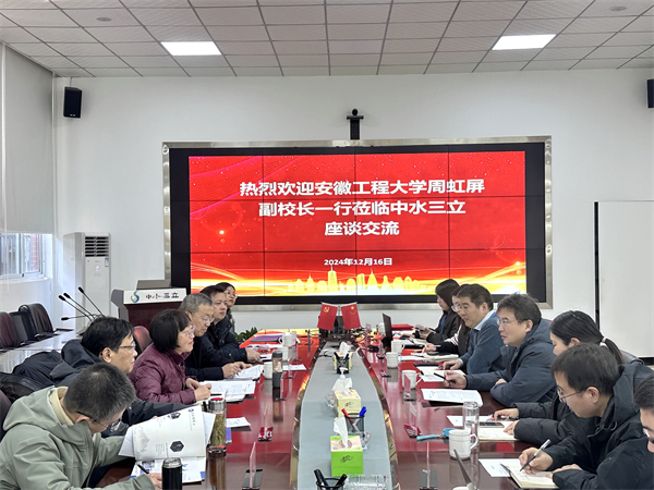 12月16日,安徽工程大學(xué)副校長(zhǎng)周虹屏、黨委研究生工作部部長(zhǎng)王勇智、計(jì)算機(jī)與信息學(xué)院院長(zhǎng)汪軍等一行蒞臨中水三立,就產(chǎn)學(xué)研合作及人才共育進(jìn)行座談交流,并舉行了研究生聯(lián)合培養(yǎng)基地揭牌儀式。中水三立總裁李兵、副總裁常仁凱等熱情接待。