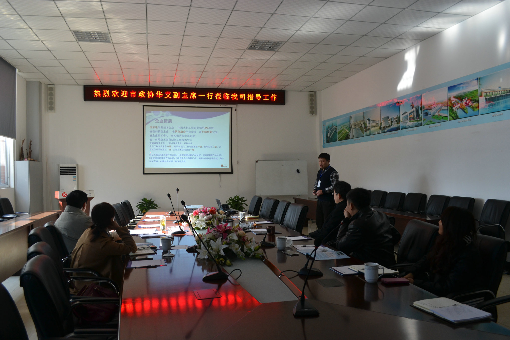2014年12月4日上午,合肥市政協(xié)華艾副主席一行來我公司參觀調(diào)研。會上公司領(lǐng)導(dǎo)首先將公司基本概況及未來發(fā)展目標向市政協(xié)領(lǐng)導(dǎo)作了匯報,在聽取匯報之后,華副主席對我司近年來所取得的成績給予了充分肯定,在提出工作要求和期望的同時,也表示了對我司未來發(fā)展的大力支持。