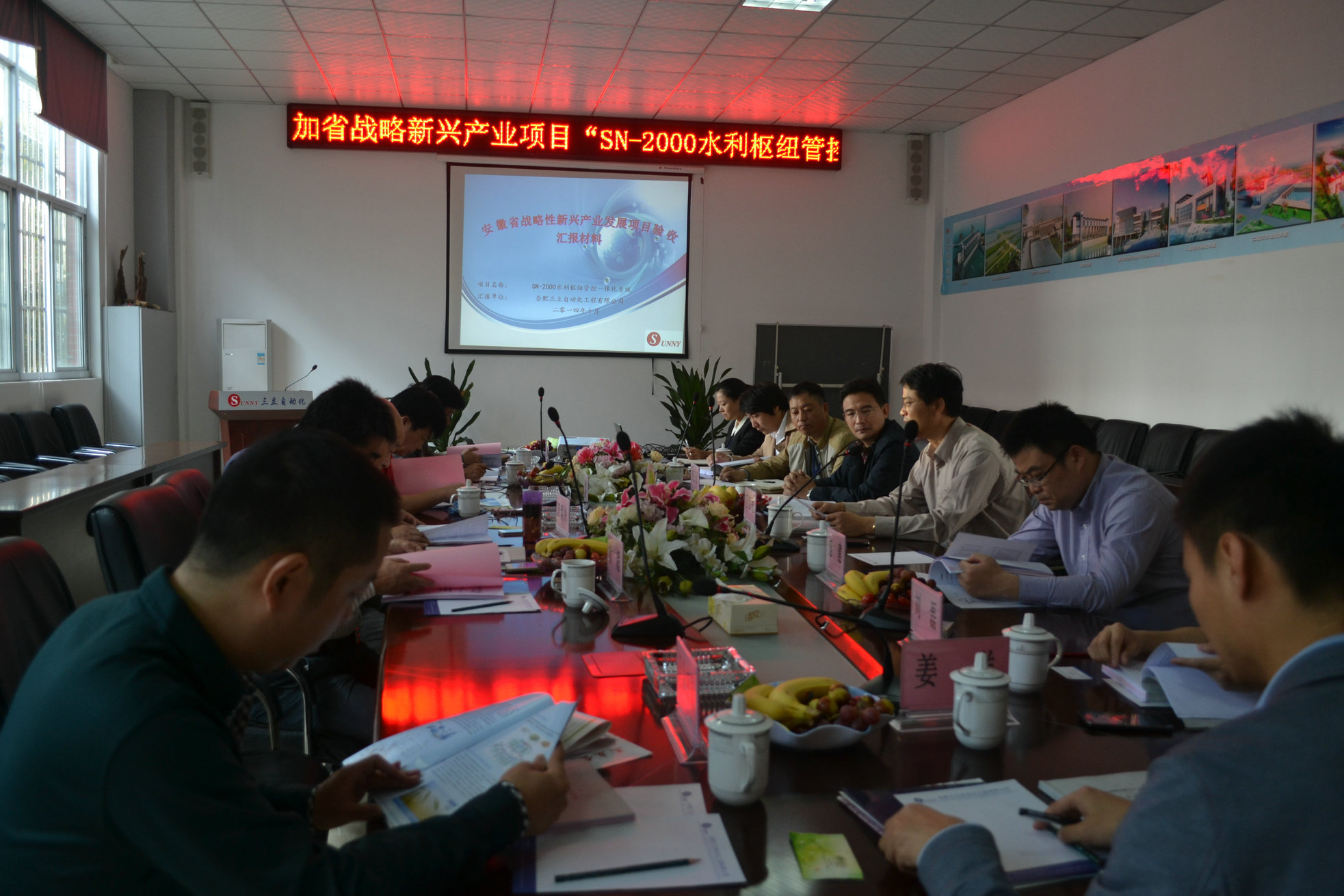 2014年10月25日上午,合肥市發(fā)展和改革委員會在合肥召開了由合肥三立自動化工程有限公司承擔的安徽省戰(zhàn)略性新興產(chǎn)業(yè)發(fā)展專項 “SN-2000水利樞紐管控一體化系統(tǒng)” 項目驗收會。專家組聽取了項目承擔單位的項目執(zhí)行情況匯報,審查了相關(guān)的驗收材料,觀看了項目產(chǎn)品的演示,考察了項目實施和生產(chǎn)現(xiàn)場。一致認為該項目采用嵌入式系統(tǒng)結(jié)構(gòu)和實時操作系統(tǒng)結(jié)構(gòu),研發(fā)了集成現(xiàn)場控制器的軟硬件平臺,通過對水利樞紐各設備的實時狀態(tài)和運行參數(shù)監(jiān)視、控制及保護數(shù)據(jù)的集中顯示、分析和處理,實現(xiàn)了水利樞紐工程的自動管控和優(yōu)化調(diào)度,降低了水利樞紐設備能源消耗,提高了設備運行的安全可靠性。該項目已經(jīng)完成立項文件規(guī)定的內(nèi)容和目標,項目資金使用符合相關(guān)規(guī)定,通過驗收。