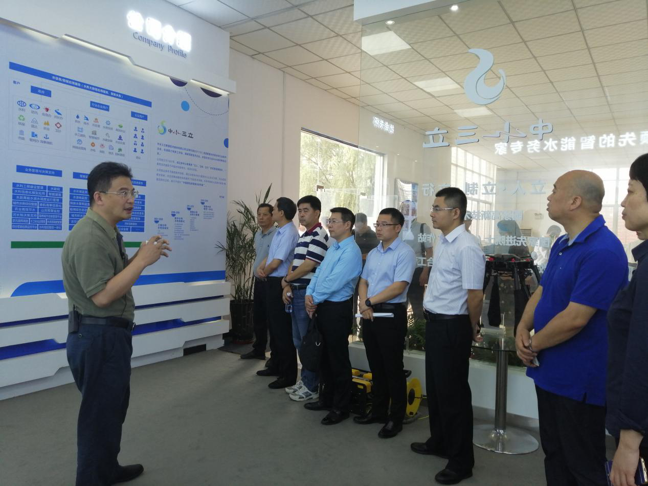 調研組一行在總經理李兵先生的陪同下參觀中水三立??偨浝砝畋壬鷱墓菊w經營發(fā)展理念和創(chuàng)新產業(yè)線兩個角度給調研組進行講解,闡述了公司多年一直專注并服務于中國水利信息化、自動化領域。